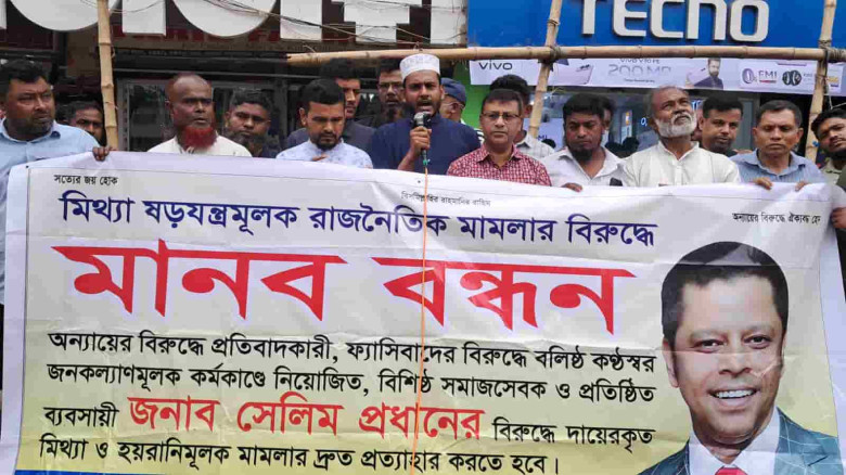 সেলিম প্রধানের বিরুদ্ধে মিথ্যা ও ষড়যন্ত্রমূলক মামলা প্রত্যাহারের দাবিতে মানববন্ধন